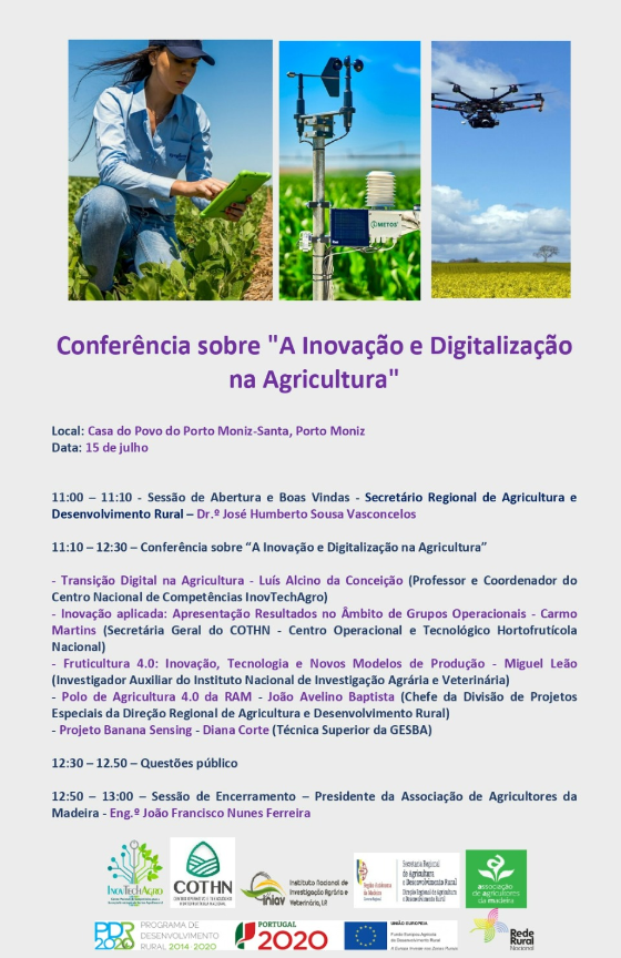 Decorrerá no próximo dia 15 de julho, na Casa do Povo do Porto Moniz, a Conferência sobre “A Inovação e Digitalização na Agricultura“.