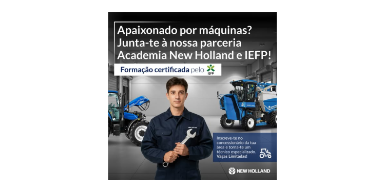 A New Holland Agriculture, em parceria com o IEFP – Instituto do Emprego e Formação Profissional, anunciou a abertura das inscrições para a nova edição da Academia New Holland, um programa de formação certificada destinado a quem pretende desenvolver competências técnicas na área das máquinas agrícolas.