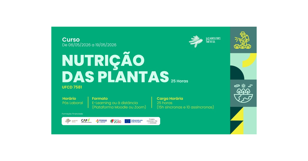 Maio de 2026 arranca com novas oportunidades de formação financiada em áreas-chave do setor agrícola e pecuário. Nutrição das plantas, bem-estar animal e cultura de espécies aromáticas são os temas em destaque num conjunto de ações que prometem reforçar competências técnicas e promover práticas mais sustentáveis.