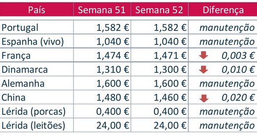 Espanha já tem o preço mais baixo da Europa, mas antecipa qualquer resposta dos concorrentes europeus ao agendar uma sessão da bolsa de Lérida para a véspera de Natal. As razões para a manutenção espanhola desta semana são duas: não é por se baixar mais o preço que se vai abater mais porcos e o resto da Europa manteve os preços.