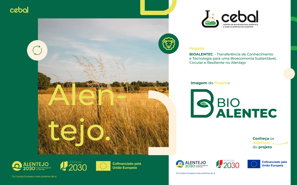 O CEBAL – Centro de Biotecnologia Agrícola e Agroalimentar do Alentejo, apresenta o projeto BIOALENTEC – Transferência de Conhecimento e Tecnologia para uma Bioeconomia Sustentável, Circular e Resiliente no Alentejo, financiado pelo Programa Regional ALENTEJO 2030 através do FEDER – Fundo Europeu de Desenvolvimento Regional. O projeto tem como principal objetivo potenciar a valorização económica dos resultados de I&D e reforçar a transferência de conhecimento científico e tecnológico para os setores agrícola, florestal, pecuário e agroalimentar da região, no âmbito da bioeconomia.