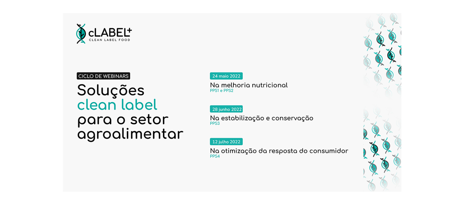 O projeto cLabel+ está a promover um ciclo de Webinars totalmente gratuito sobre o tema: “Soluções Clean Label para o Setor Agroalimentar”, nos quais serão apresentados alguns dos resultados que dão resposta aos desafios colocados à industria alimentar.