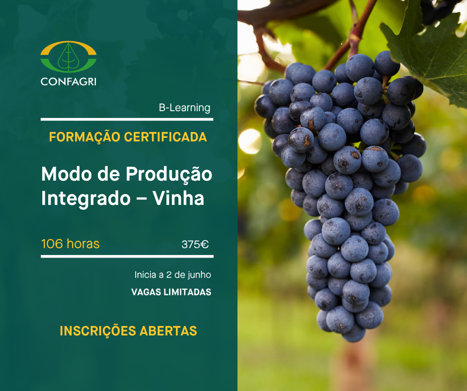 Nos próximos dias 21 de maio e 02 de junho, a CONFAGRI irá iniciar, respetivamente, as ações de formação “Atualização em Distribuição, Comercialização e Aplicação de Produtos Fitofarmacêuticos” e “Modo de Produção Integrado – Vinha”, dirigidas a técnicos do setor agrícola.