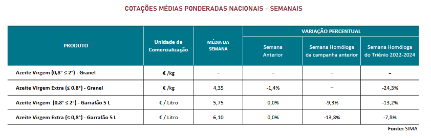 Cotações – Azeite e Azeitona – 26 de janeiro a 1 de fevereiro de 2025