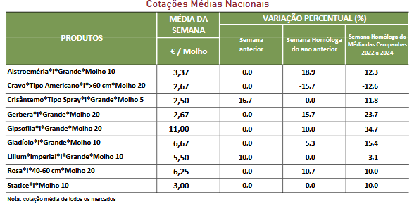 Na região Ribatejo Oeste, área de mercado Península de Setúbal, verificou-se uma diminuição da procura, as cotações tiveram uma descida para o crisântemo “Tipo Spray” (despedida) em 17%.