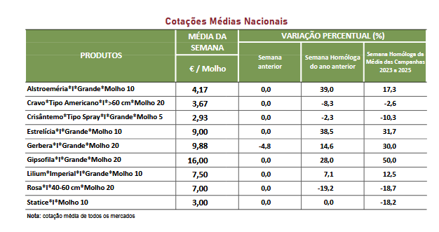 Na região da Beira Litoral, área de mercado Beira Litoral, na semana em análise não se verificaram alterações das cotações.