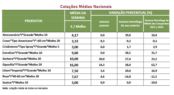 Cotações – Flores e Folhagens – 29 de dezembro a 4 de janeiro de 2025