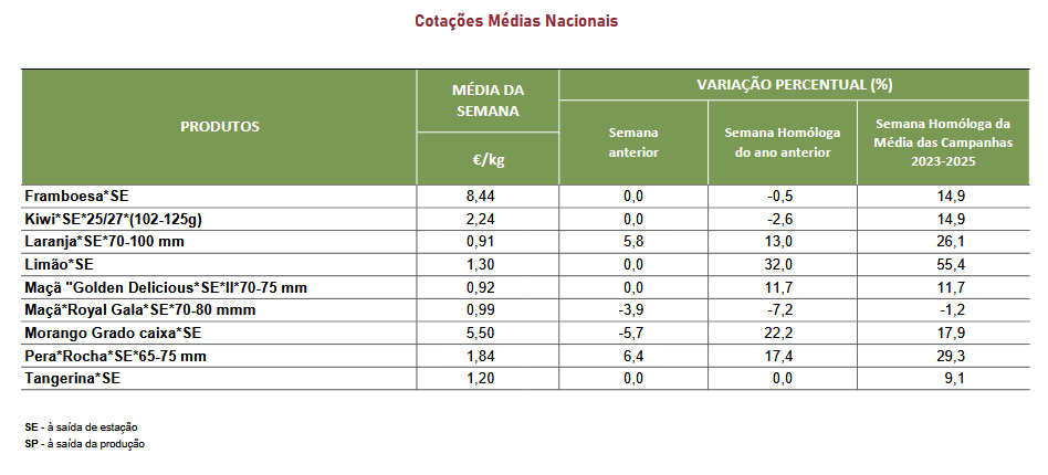 Cotações – Frutos frescos e secos – 12 a 18 de janeiro de 2025