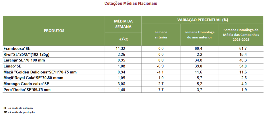 Cotações – Frutos frescos e secos – 21 a 27 de julho de 2025