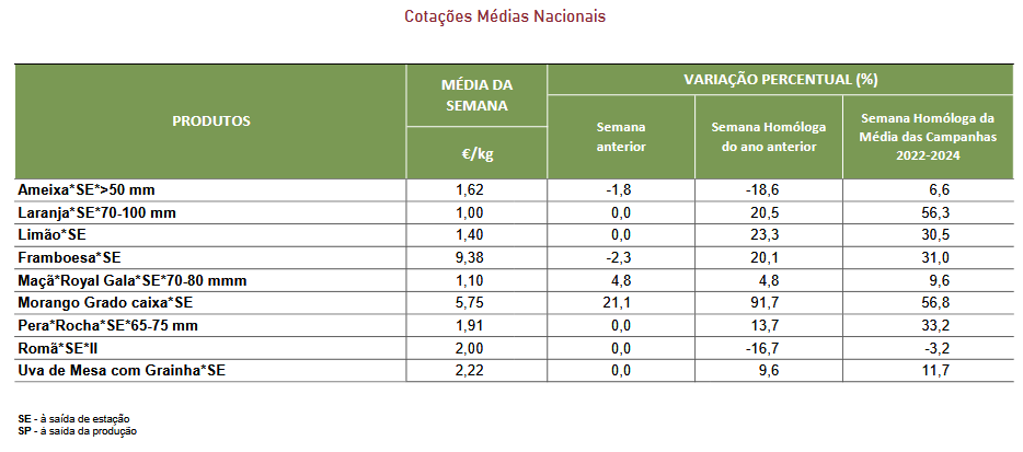 Cotações – Frutos frescos e secos – 6 a 12 de outubro de 2025