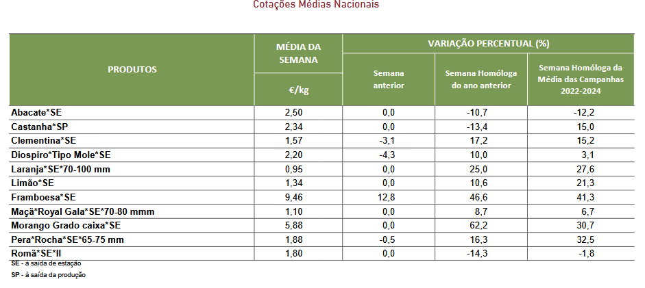 Cotações – Frutos frescos e secos – 10 a 16 de novembro de 2025