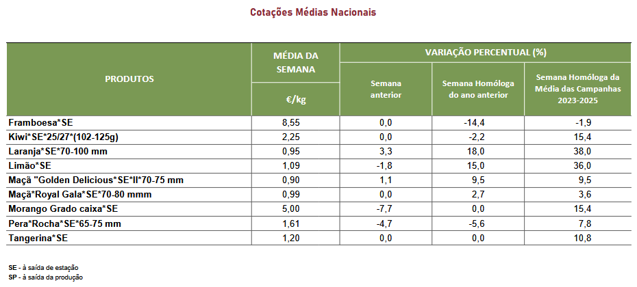 Cotações – Frutos frescos e secos – 26 de janeiro a 1 de fevereiro de 2025