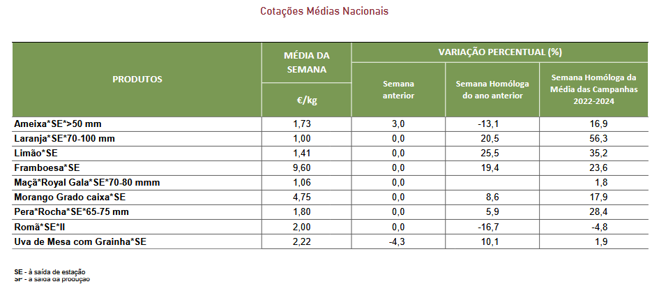 Cotações – Frutos frescos e secos – 22 a 28 de setembro de 2025