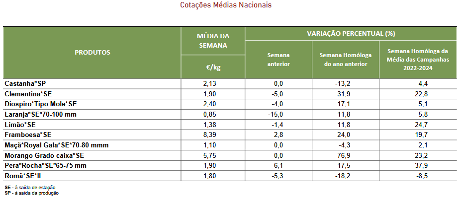 Cotações – Frutos frescos e secos – 27 de outubro a 2 de novembro de 2025