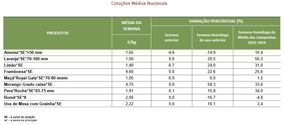 Cotações – Frutos frescos e secos – 29 de setembro a 5 de outubro de 2025