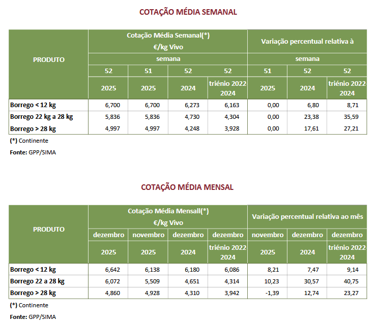 Na área de mercado Alentejo Norte: a cotação máxima de ovelha reprodutora aumentou 10,00 €/U.