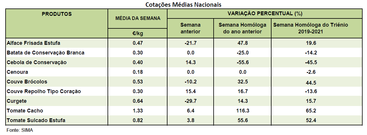 Nabiça – Na Região Norte, na área de mercado Entre Douro e Minho a cotação mais frequente subiu, devido a uma menor oferta. Oferta média equilibrada com a procura. Escoamento sem dificuldades. Produção ao ar livre e em estufa.