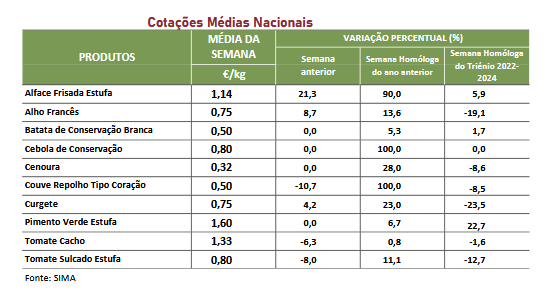 14%. Ainda se verificou uma descida para a couve-flor SP não calibrada em 32%, devido a uma menor procura e maior oferta.