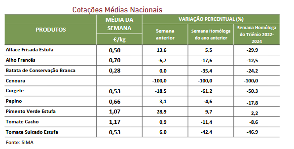Cotações – Produtos Hortícolas – 22 a 28 de setembro de 2025