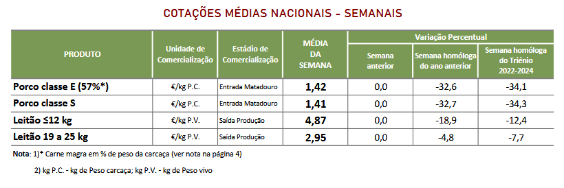 Leitão ≤12 kg – Manutenção de todas as cotações.