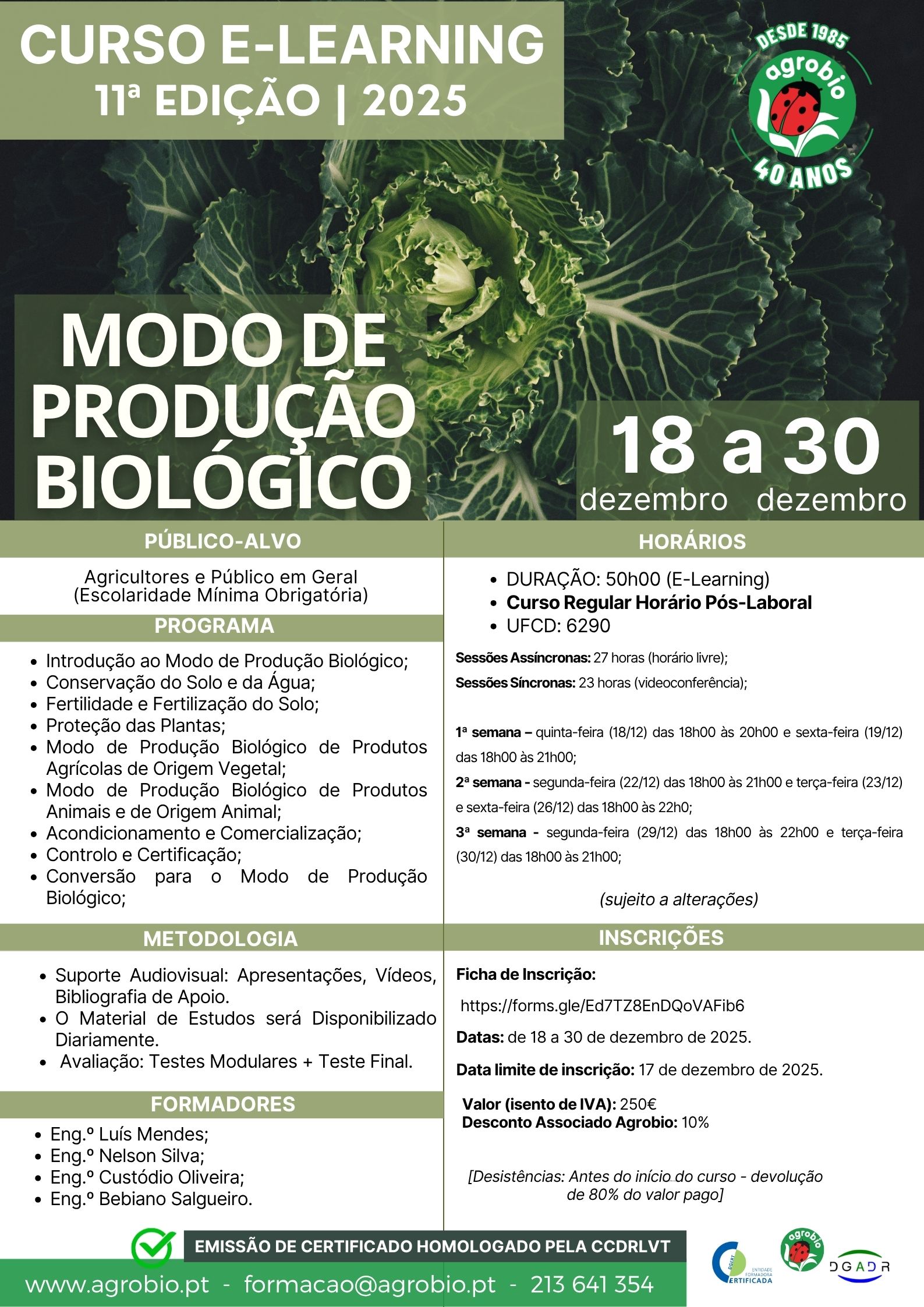 Duração: 50h00 – (E-Learning) Curso Regular – Horário Pós-Laboral