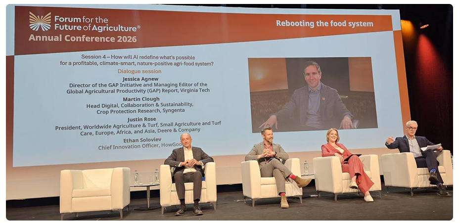 Já Martin Clough, responsável digital e de sustentabilidade na investigação de proteção de culturas da Syngenta, enfatizou o impacto da IA na proteção das plantas. Segundo explicou, a IA generativa permite responder a múltiplos desafios em simultâneo, aumentando a capacidade dos cientistas para desenvolver soluções eficazes mais rapidamente. Acrescentou ainda que, na saúde do solo, a IA pode ser disruptiva ao possibilitar a análise de grandes volumes de dados.