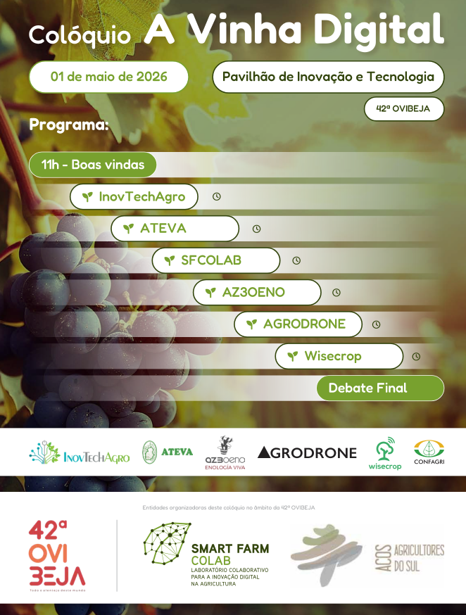 O colóquio “A Vinha Digital” realiza-se no dia 1 de maio de 2026, no Pavilhão de Inovação e Tecnologia, inserido na programação da 42.ª Ovibeja.
