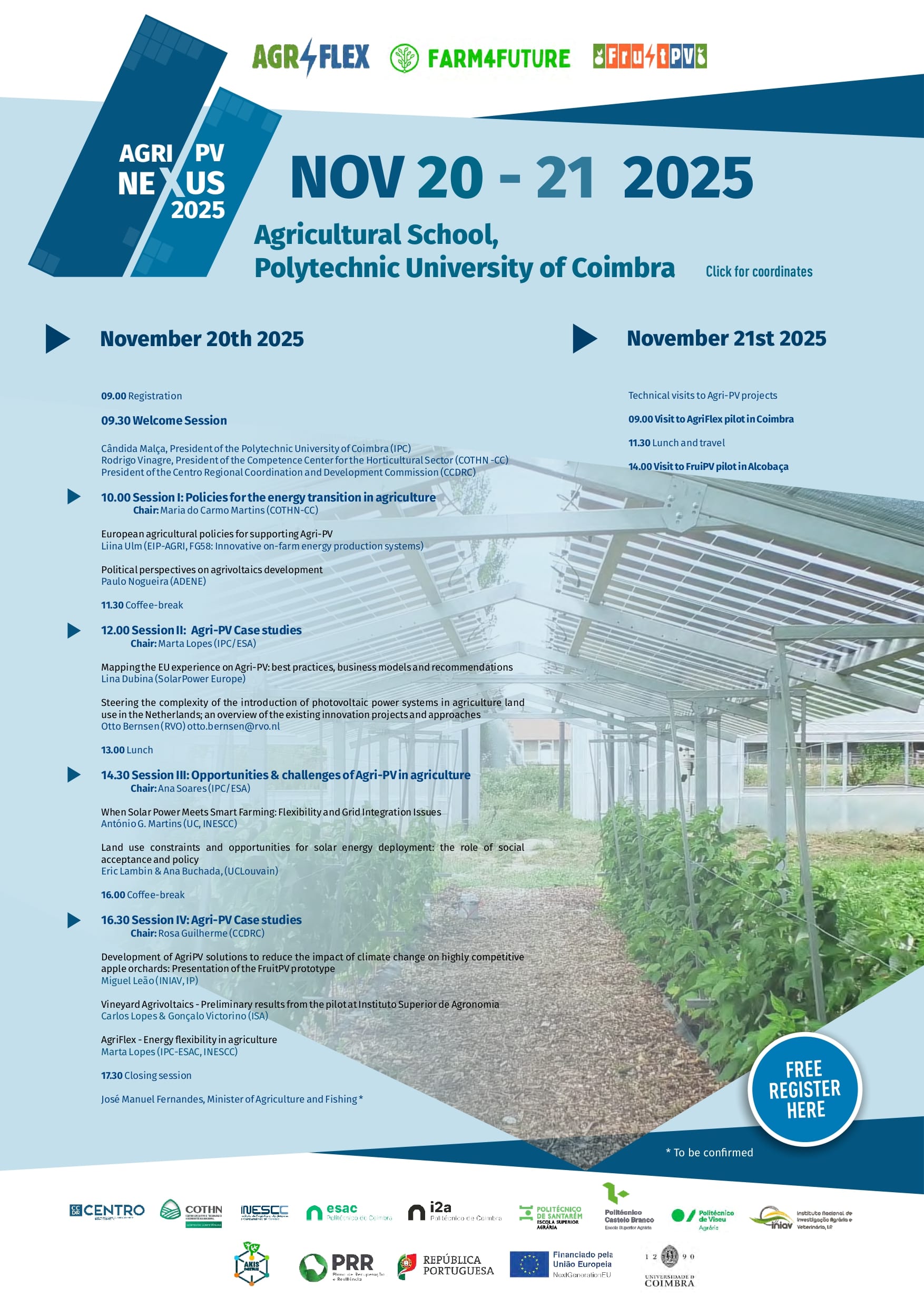 O AGRI-PV Nexus 2025 – International Meeting on Agrivoltaics tem lugar já nos próximos dias 20 e 21 de novembro, na ESAC!