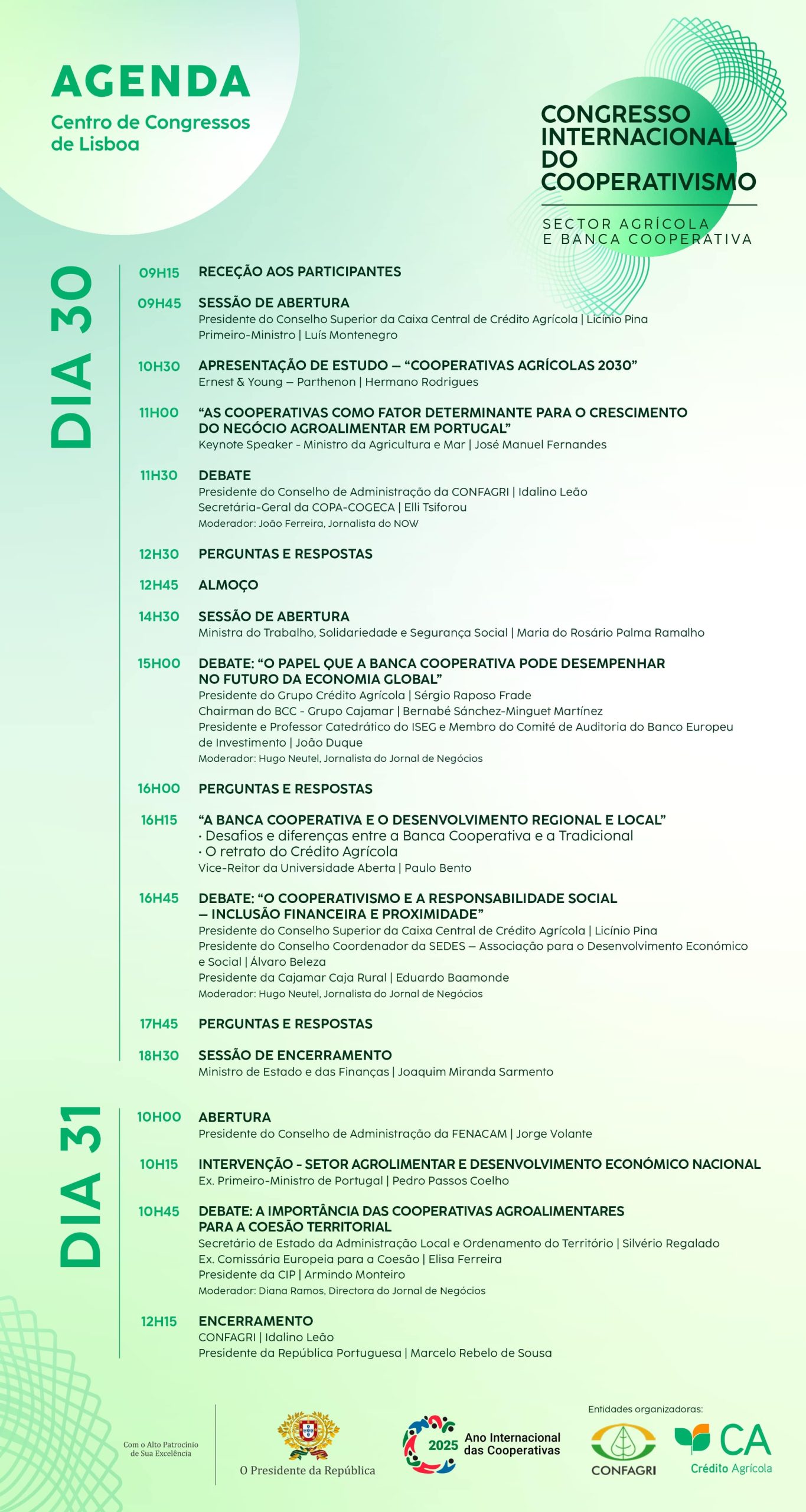 O encontro contará com a participação de personalidades de referência das esferas académica, económica, cooperativa e política que, ao longo de dois dias, irão partilhar visões, experiências e propostas, com o objetivo de destacar o papel do cooperativismo como motor de desenvolvimento sustentável e de coesão social e territorial.