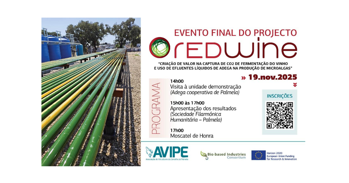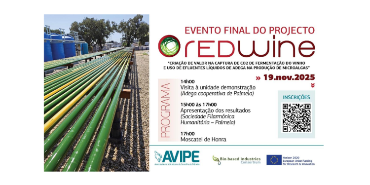 A ADEGA Cooperativa de Palmela recebe, no próximo dia 19 de novembro de 2025, o evento final do projeto europeu REDWine, uma iniciativa financiada pela União Europeia através do programa Bio-based Industries Joint Undertaking (BBI JU). O projeto, que reuniu 12 entidades de seis países, encerra cinco anos de investigação aplicada e demonstração tecnológica dedicada à economia circular no setor vitivinícola.