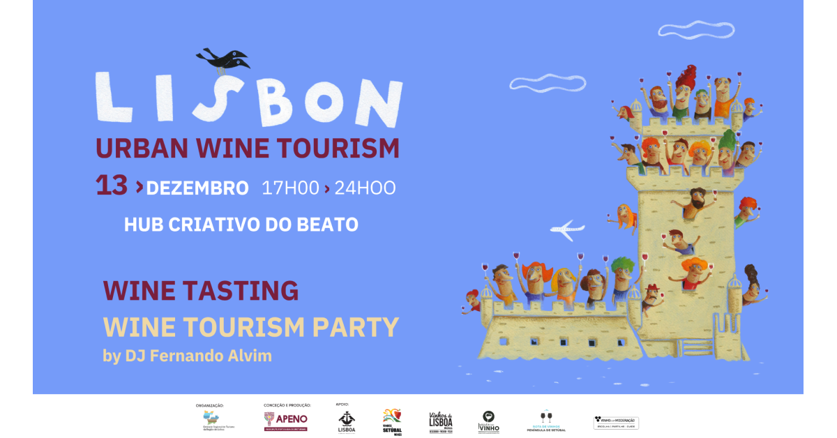 A Entidade Regional de Turismo da Região de Lisboa (ERT-Lisboa) organiza e apresenta, no próximo dia 13 de dezembro, a primeira grande festa dedicada ao enoturismo urbano, um evento inédito na capital que pretende destacar a crescente relevância do vinho e do enoturismo no contexto citadino. A iniciativa é concebida e produzida pela Associação Portuguesa de Enoturismo (APENO), com o apoio da Câmara Municipal de Lisboa, das Comissões Vitivinícolas de Lisboa e Península de Setúbal, tendo como media partner a Revista Paixão pelo Vinho. Os bilhetes já estão à venda em: https://ticketline.sapo.pt/pt/evento/lisbon-urban-wine-tourism-enoturismo-urbano-99338