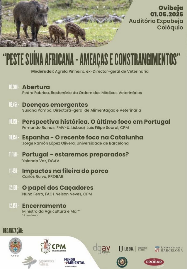No âmbito da 42.ª Ovibeja que se realiza de 29 a 3 abril, a DGAV vai estar presente no dia 1 de maio, no Auditório da Expobeja, para a realização do seguinte colóquio:
