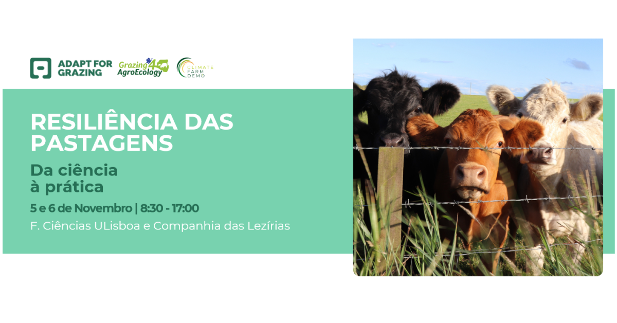 O evento “Resiliência das Pastagens: Da Ciência à Prática” é uma iniciativa conjunta dos projetos Grazing4Agroecology, Climate Farm Demo e AdaptforGrazing que unem esforços para promover a sustentabilidade, a inovação e a adaptação climática.