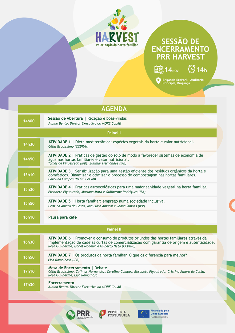 O evento é de participação gratuita, mas inscrição obrigatória através do link: Sessão de Encerramento PRR HARVEST – Preencher o formulário