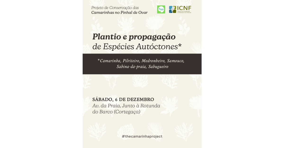 Irá decorrer no próximo sábado, dia 6 de dezembro, mais uma atividade inserida no projeto de conservação das Camarinhas no Pinhal de Ovar. Será uma “ação de campo” para plantação de espécies autóctones – camarinha, pilriteiro, medronheiro, samouco, sabina-da-praia e sabugueiro – cedidas pelo Instituto da Conservação da Natureza e das Florestas (ICNF).