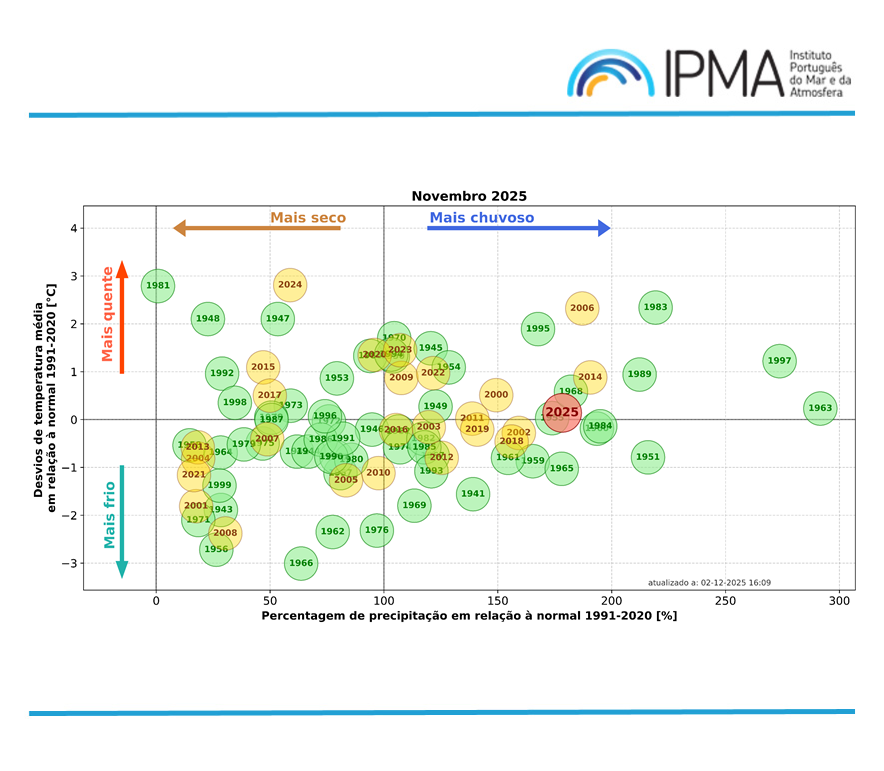 O resumo do Boletim Climatológico do mês de novembro de 2025, para Portugal continental, corresponde a uma análise preliminar dos dados disponíveis, até à data da publicação.