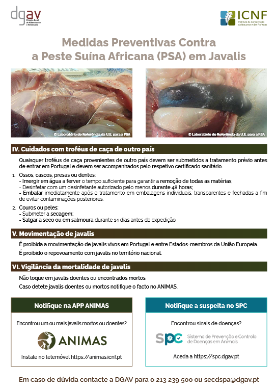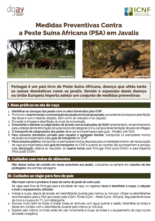 O documento foi elaborado pela DGAV e pelo ICNF com um conjunto de medidas preventivas contra a Peste Suína Africana a considerar no âmbito da caça ao Javali.