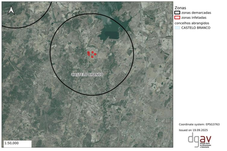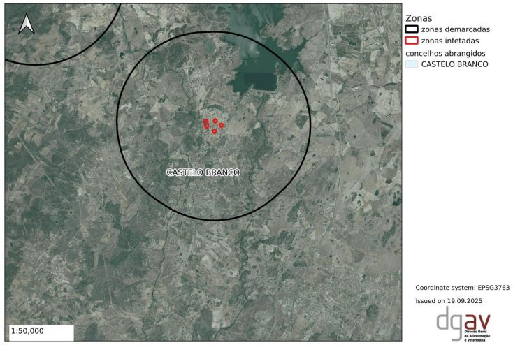 Com a publicação do EDITAL 20/2025/XF/C, EDITAL 22/2025/XF/C e EDITAL 23/2025/XF/C, procede-se à publicitação da atualização das zonas demarcadas para Xylella fastidiosa de Castelo Branco III, Monte Redondo, e Castelo Branco II respetivamente, conforme últimas atualizações dos Despachos: Despacho n.º 136/G/2025, Despacho n.º 135/G/2025, Despacho n.º 125/G/2025, respetivamente, assim como a notificação da aplicação de medidas fitossanitárias.