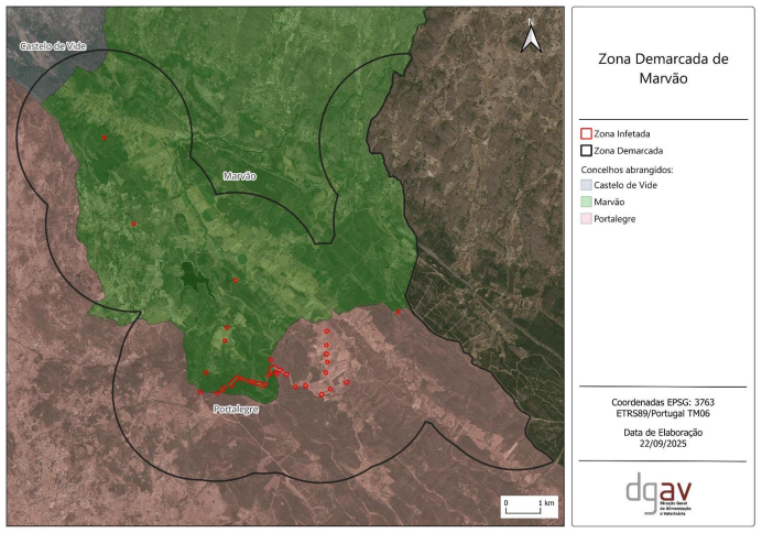 Com a publicação do EDITAL 21/2025/XF/AL procede-se à publicitação da atualização da zona demarcada para Xylella fastidiosa de Marvão, conforme última atualização do Despacho n.º 133/G/2025, assim como a notificação da aplicação de medidas fitossanitárias.