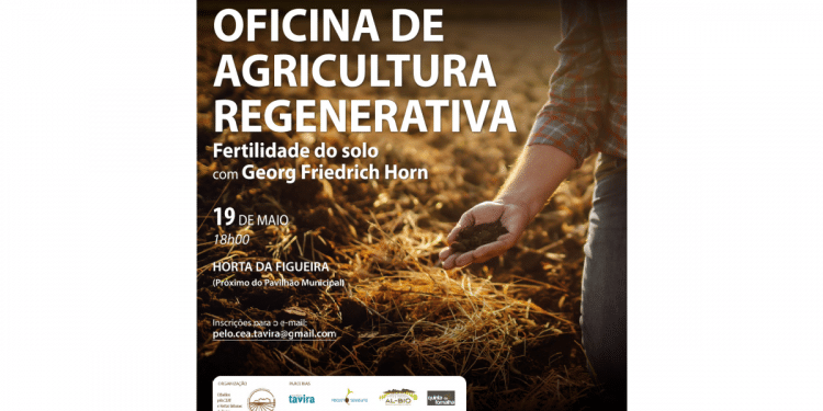 Na Sexta-feira 19 de Maio pelas 18h00 na Horta Comunitária da Figueira, próximo ao Pavilhão e Piscinas Municipais de Tavira terá lugar uma oficina gratuita de Agricultura Regenerativa e fertilidade dos solos, destinada a todos os cidadãos interessados (hortelãos e não hortelãos).