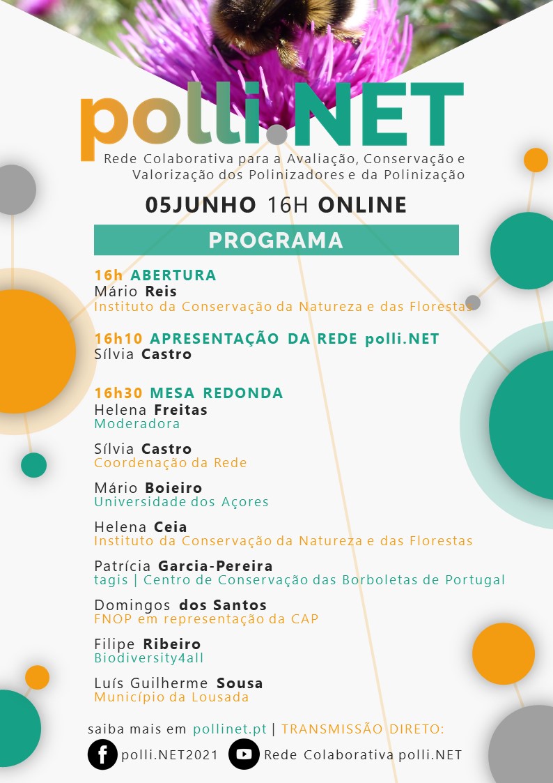 No dia 5 de junho, pelas 16 horas, no âmbito da comemoração do Dia Mundial do Ambiente, decorre a apresentação pública da polli.NET – Rede Colaborativa para a Avaliação, Conservação e Valorização dos Polinizadores e da Polinização.