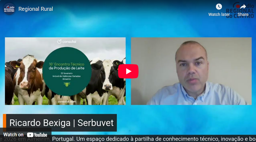Hoje… 10.º Encontro Técnico de Produção de Leite, organizado pela SERBUVET. Dr Ricardo Bexiga técnico da Serbuvet e que conta com o patrocínio da CONSULAI fala-nos dos objetivos do 10.º Encontro Técnico de Produção de Leite, organizado pela SERBUVET, que se realiza no dia 20 de fevereiro, no Imóvel de Valências Variadas, em Almeirim.