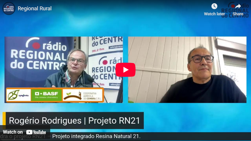 Hoje no REGIONAL RURAL …. RN21 – Projeto Integrado Resina Natural 21. Rogério Rodrigues, Coordenador Executivo do CoLAB ForestWISE e Diretor do Projeto Integrado RN21 fala-nos deste projeto e da sua evolução. RN21 – Projeto integrado Resina Natural 21 — Inovação na Fileira da Resina Natural para Reforço da Bioeconomia Nacional. Acelerar a produção de produtos de alto valor acrescentado a partir de recursos biológicos (em alternativa às matérias de base fóssil) é uma das metas do PRR – Plano de Recuperação e Resiliência, componente C12 – Bioeconomia Sustentável em que se enquadra o projeto RN21 – Projeto integrado Resina Natural 21.