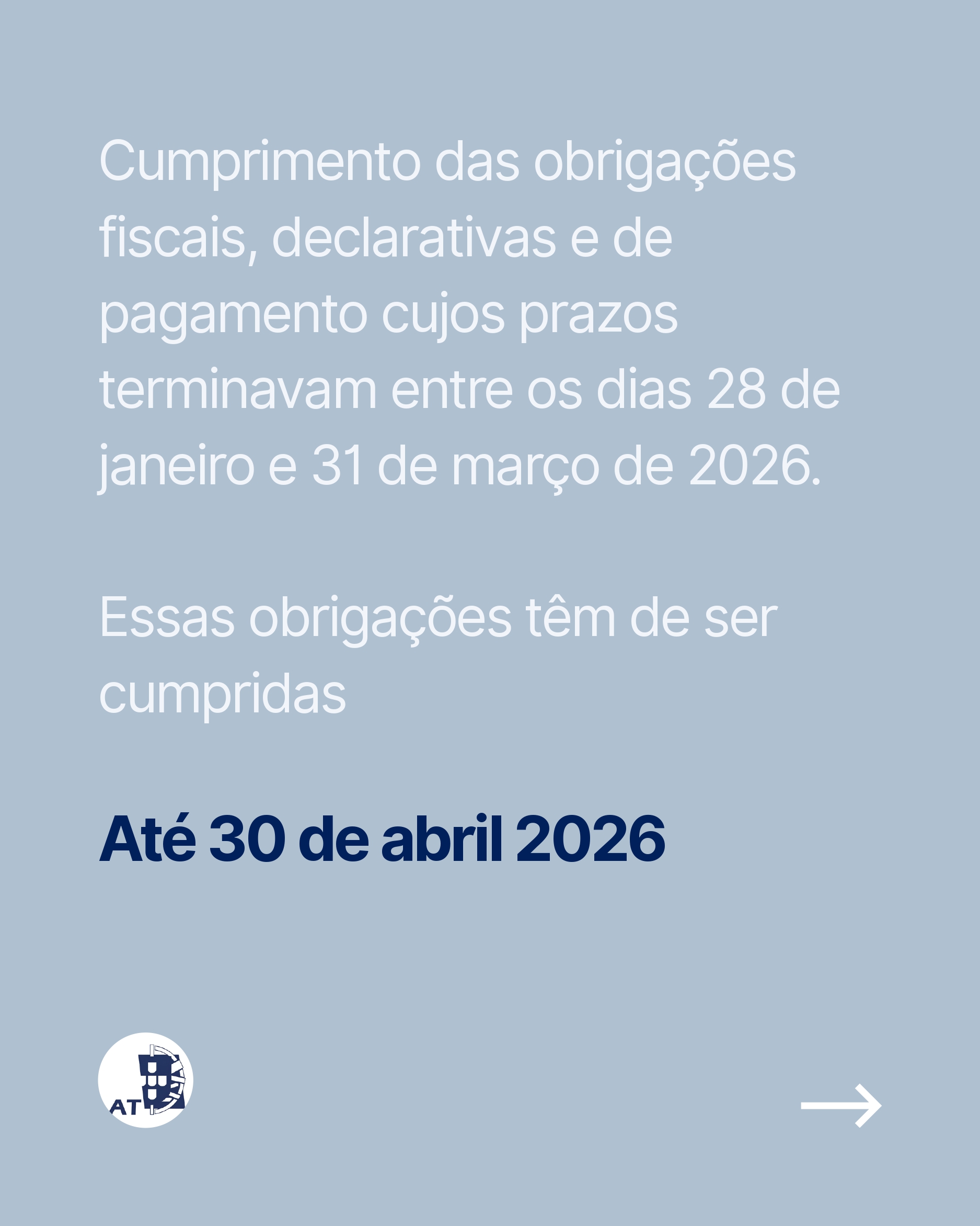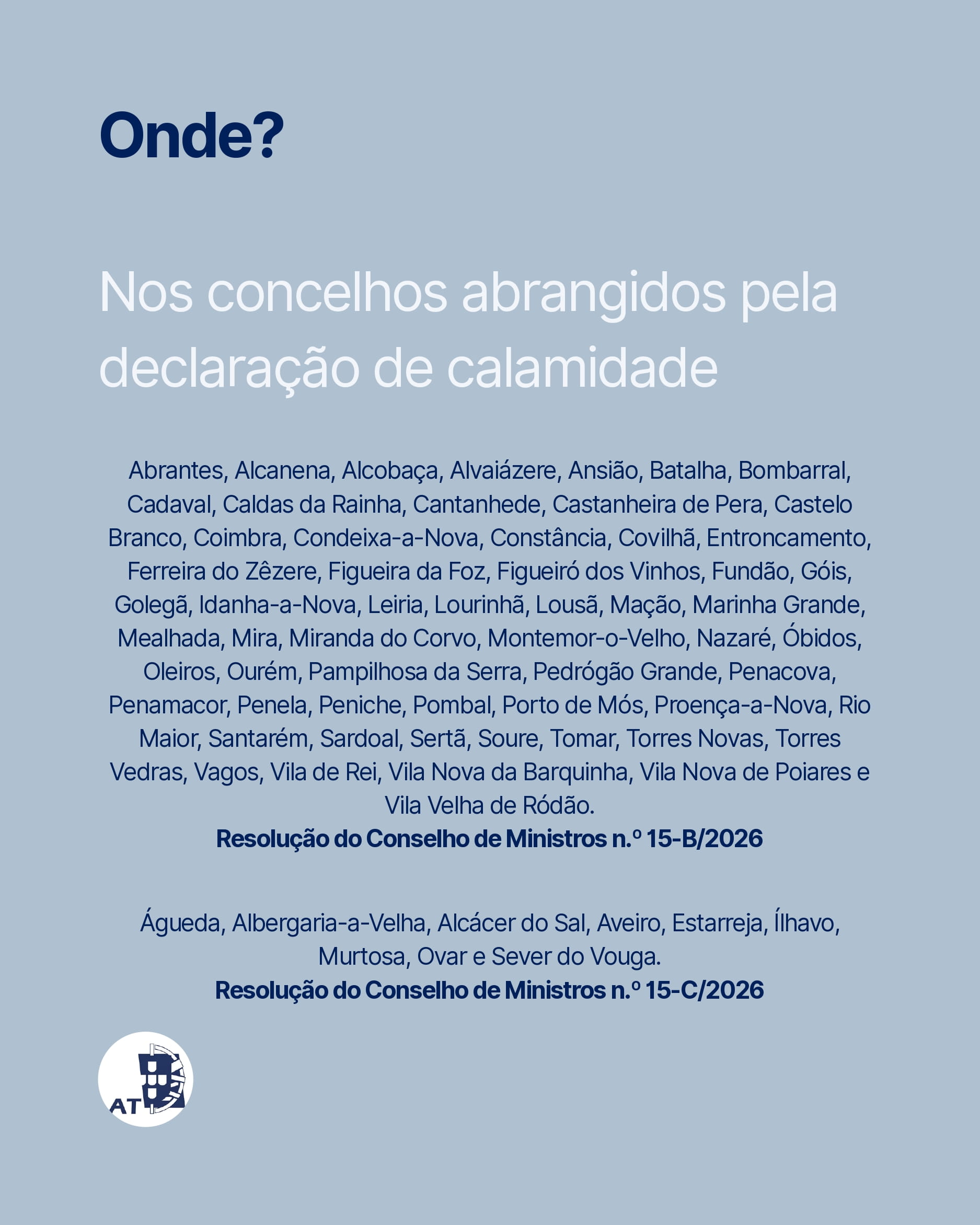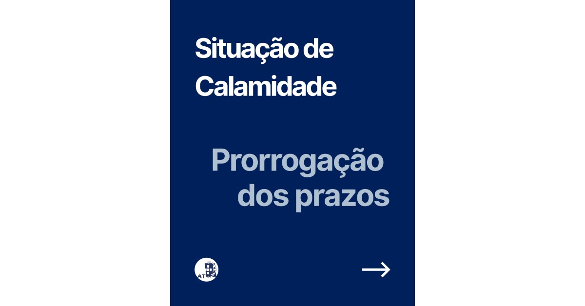 <img class="aligncenter wp-image-1226692 size-full" src="https://www.agroportal.pt/wp-content/uploads/2026/02/Prorrogacao-de-Prazos-Situacao-de-Calamidade_page-0001.jpg" alt="" width="1875" height="2344" /> <img class="aligncenter wp-image-1226693 size-full" src="https://www.agroportal.pt/wp-content/uploads/2026/02/Prorrogacao-de-Prazos-Situacao-de-Calamidade_page-0002.jpg" alt="" width="1875" height="2344" /> <img class="aligncenter wp-image-1226694 size-full" src="https://www.agroportal.pt/wp-content/uploads/2026/02/Prorrogacao-de-Prazos-Situacao-de-Calamidade_page-0003.jpg" alt="" width="1875" height="2344" /> <img class="aligncenter wp-image-1226695 size-full" src="https://www.agroportal.pt/wp-content/uploads/2026/02/Prorrogacao-de-Prazos-Situacao-de-Calamidade_page-0004.jpg" alt="" width="1875" height="2344" /> <em>Fonte: AT</em>