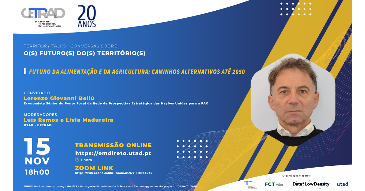 O convidado da próxima sessão do ciclo “Territory Talks – Conversas sobre o(s) Futuro(s) do(s) Território(s)” é, desde 2000, economista sénior do Ponto Focal da Rede de Prospetiva Estratégica das Nações Unidas para a FAO. Foi responsável pela coordenação técnica do estudo prospetivo apresentado no relatório “The future of food and agriculture – Trends and challenges”.