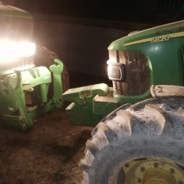 Depois de me zangar comigo próprio e dizer qualquer coisa que não se deve dizer, respirei fundo, fui buscar o trator mais pequeno com os cabos para “dar de mamar” à bateria do grande, deixei alguns minutos o pequeno a trabalhar enquanto abastecia a semente, dei à chave, o trator ligou, respirei de alívio, fechei os capôs e, mais calmo, lembrei-me de tirar esta foto para recordação, enquanto me lembrava que se diz que “o grande nunca pediu ao pequeno”, mas afinal “não há regra sem exceção”…